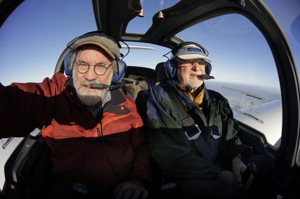 Christoph und ich haben uns mit dem Mose in die Luft geschwungen. Bei Kälte ist das Anlassen immer spannend: Läuft er oder brauchen wir Starthilfe? Aber mit 20 Kurbelwellenumdrehungen von Hand haben wir richtig gute Chancen.