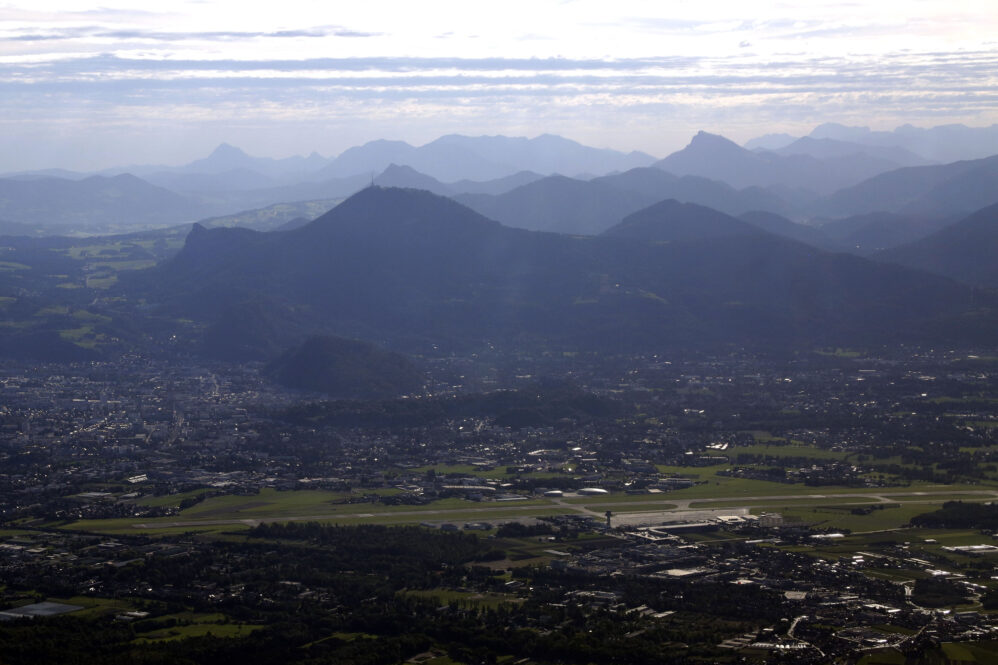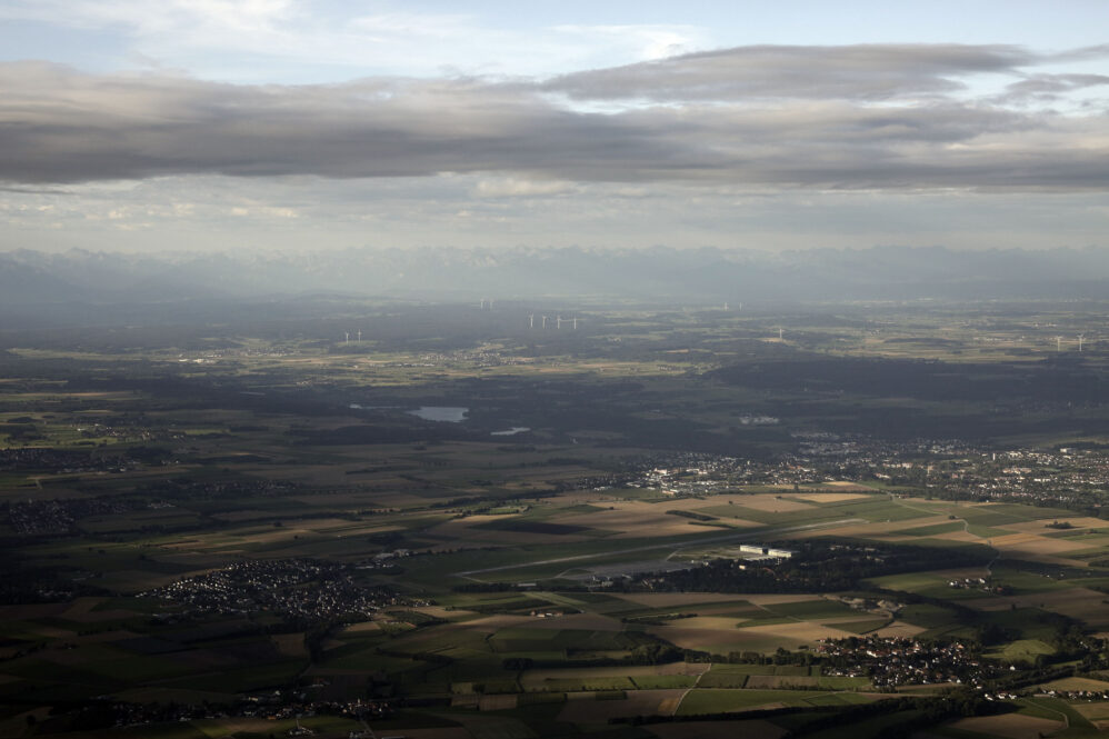 In Gmunden angekommen sind wir 1 Minute vor dem Flugplan (wieder über AIS im Internet aufgeben) in der Luft gewesen und bei dem heftigen Gegenwind gestiegen wie ein Ballon! Jetzt musste sich unser Mose gegen den starken Wind durchsetzen. Die Route war gleich wie beim Hinflug – der Wind eher noch einen Tick stärker – wir hatten Wind in Spitzen bis 80km/h, gemittelt 60km/h. Unser Flugweg führte diesmal nördlich der Salzburger Piste durch die Kontrollzone und sollten ein-zwei Minuten wegen Verkehrs warten. Aber der Lotse hat sicher übersehen, dass wir wegen dem Wind gaanz laangsam sind. Egal, auf der Hahnweide angekommen hatten wir noch 25 Minuten bis zum Sonnenuntergang. Wie beim Hinflug war wenig los im Funk, wenig Verkehr und wieder grandiose Flugsicht. Das schwächelnde Headset war von Ilhan repariert worden und funktioniert wieder perfekt.