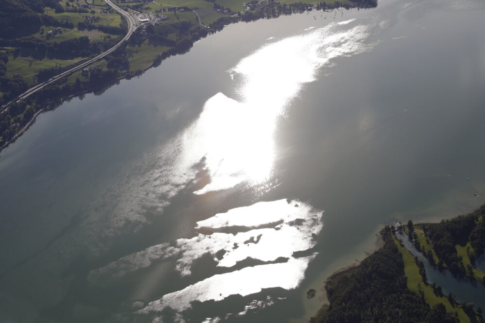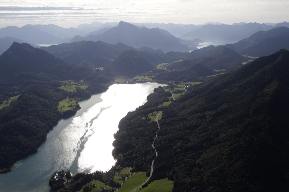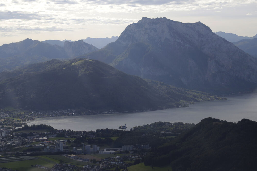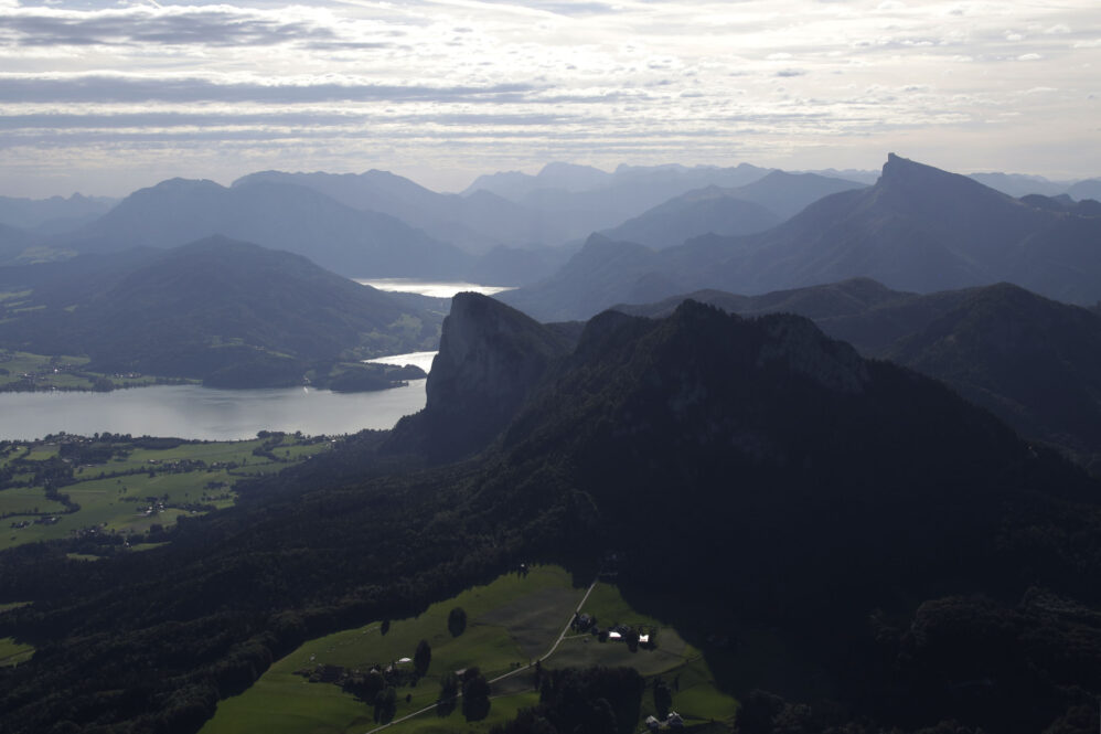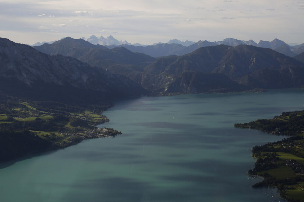 Der Flug am frühen Morgen war wunderschön und die Sicht großartig. Das Licht zeichnete malerisch lange Schatten, beim Rückflug wird es wieder so sein. Vorbei an Ammersee, Starnberger See und Chiemsee näherten wir uns Salzburg für ein midfieldcrossing in 3000ft. Kein Problem, der freundliche Fluglotse hat unsere Wünsche erfüllt und wir haben Dank unserem Navi seine Pflichtmeldepunkte ganz leicht gefunden. Östlich Salzburg wird die Szenerie noch traumhafter. Die Seen des Salzkammerguts begrüßen uns wie glitzernde Edelsteine, sie fließen förmlich aus dem Gebirgsstock des Karwendel heraus. Fuschlsee, Mondsee, weiter entfernt rechter Hand der Wolfgangsee, dann Attersee und Traunsee. Teilweise liegen sie mit ihrer südlichen Hälfte zwischen steilen Felswänden, manche kleinere Seen sind auch komplett umarmt vom Fels. Die Berge wachsen ohne Vorgeplänkel aus der Ebene heraus und stehen ganz mächtig da!