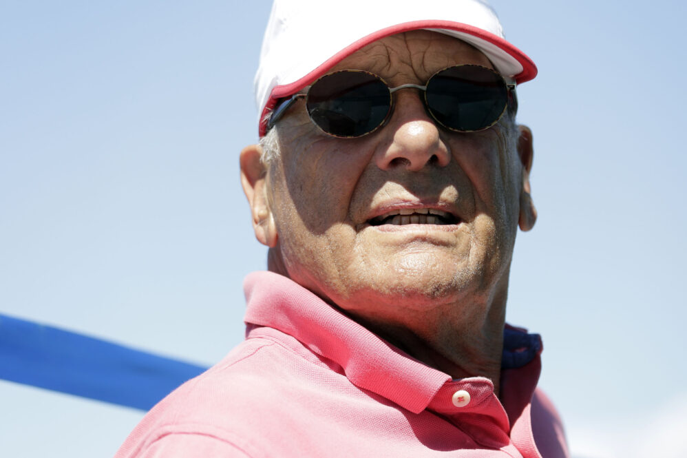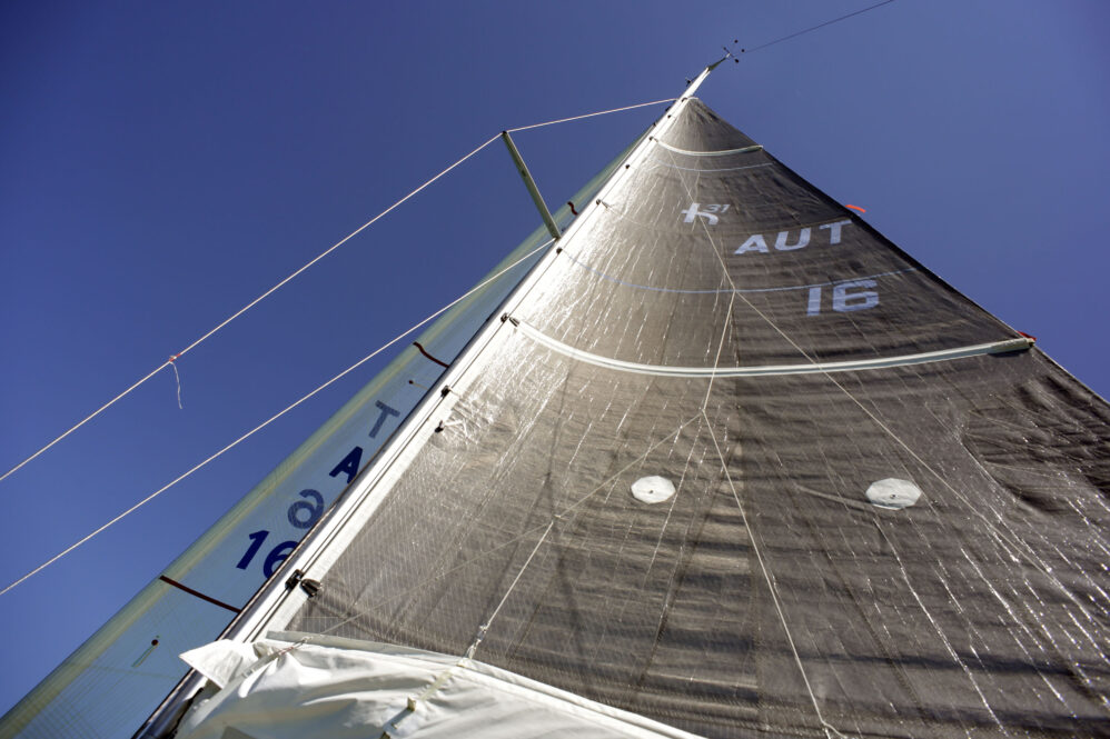 Gechillt wurde auf einem anderen Boot. Direkt neben unserem Steg hatten junge Leute eine Schwimminsel an das Motorrennboot gebunden und sind damit elektrisch zum Baden auf den See geschlichen – mit Benzinmotor darf man erst wieder im Herbst fahren. Der See war herrlich, die Temperaturen perfekt zum Wohlfühlen und der Wind launisch. Ständig wechselte er die Richtung und die Stärke – jedes mal dicht holen oder fieren und natürlich den Holepunkt korrigieren! Aber so ist das auf einem Rennboot. Ich durfte fotografieren.
