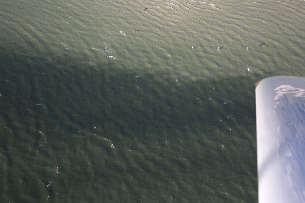 Bei starkem Wind ist klar: man fliegt tief, weil der Wind dann schwächer ist. So tief, dass man einen Vorteil hätte, konnte man aber gar nicht fliegen. Franz ist dann 1000ft höher gestiegen – und oh Wunder – die Luft war ruhig und der Wind auch nicht stärker! So konnten wir die Taktik zu Routen und Höhenplanung bei starkem Gegenwind theoretisch und praktisch behandeln.