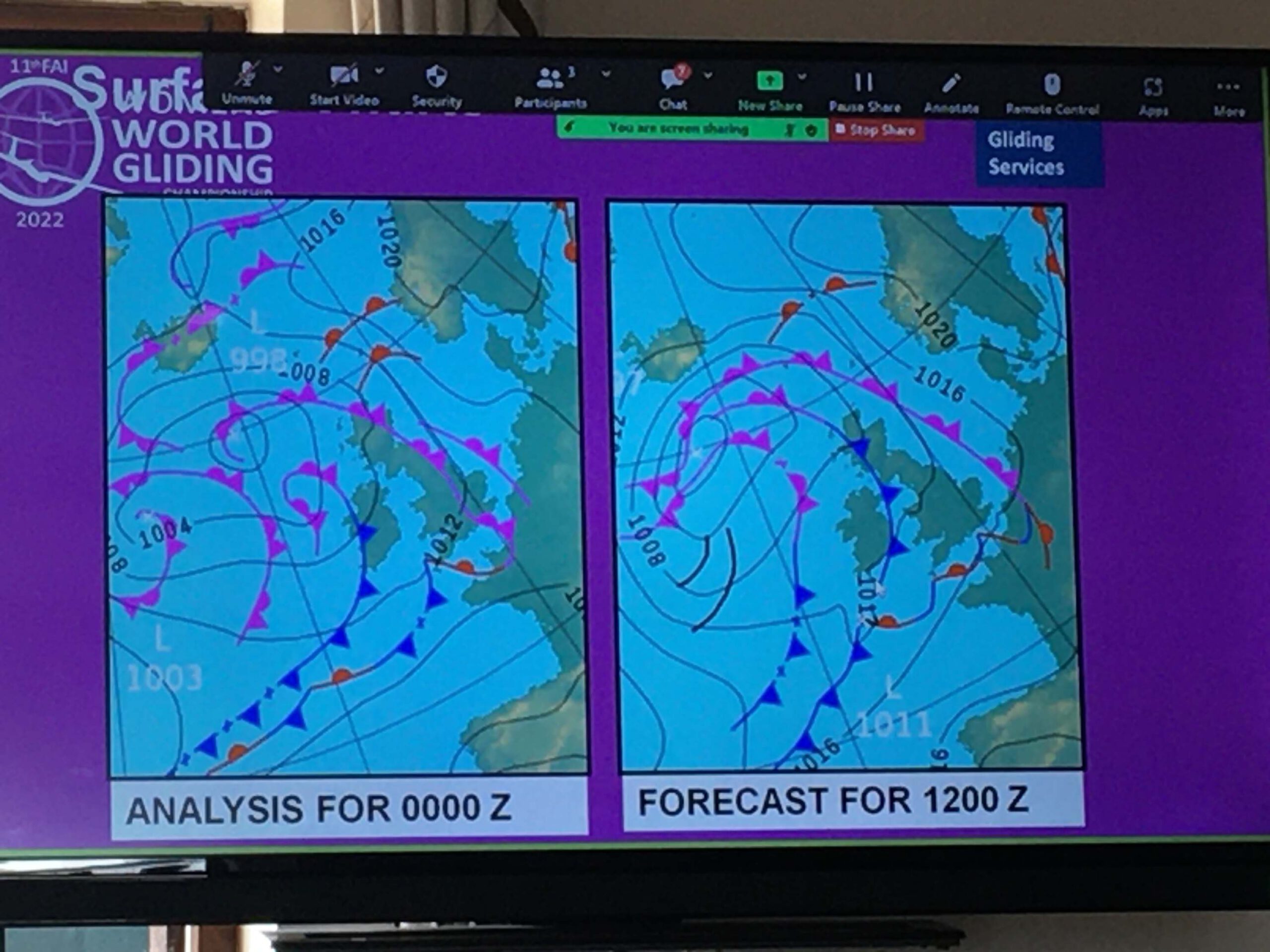 In einem vorbereitenden Treffen der National Mannschaft wurde uns vom Meteorologen Walter Hermann das wahrscheinlich zu erwartende Wetter unter dem Schlagwort „Tiefdruckfriedhof“ vorgestellt. Das beinhaltete nach seiner Auswertung einiger August-Wettbewerbe schnell wechselndes Wetter, tiefe Basis, starken Wind, zerrissene, schlechte Thermik und kleine Strecken mit vielen Wendepunkten. Ich hatte unter diesen Voraussetzungen ehrlich gesagt nicht so richtig große Lust auf eine Reise ins „Thermik-Eldorado“ England, entschloss mich aber dann doch, diese Erfahrung zu wagen.