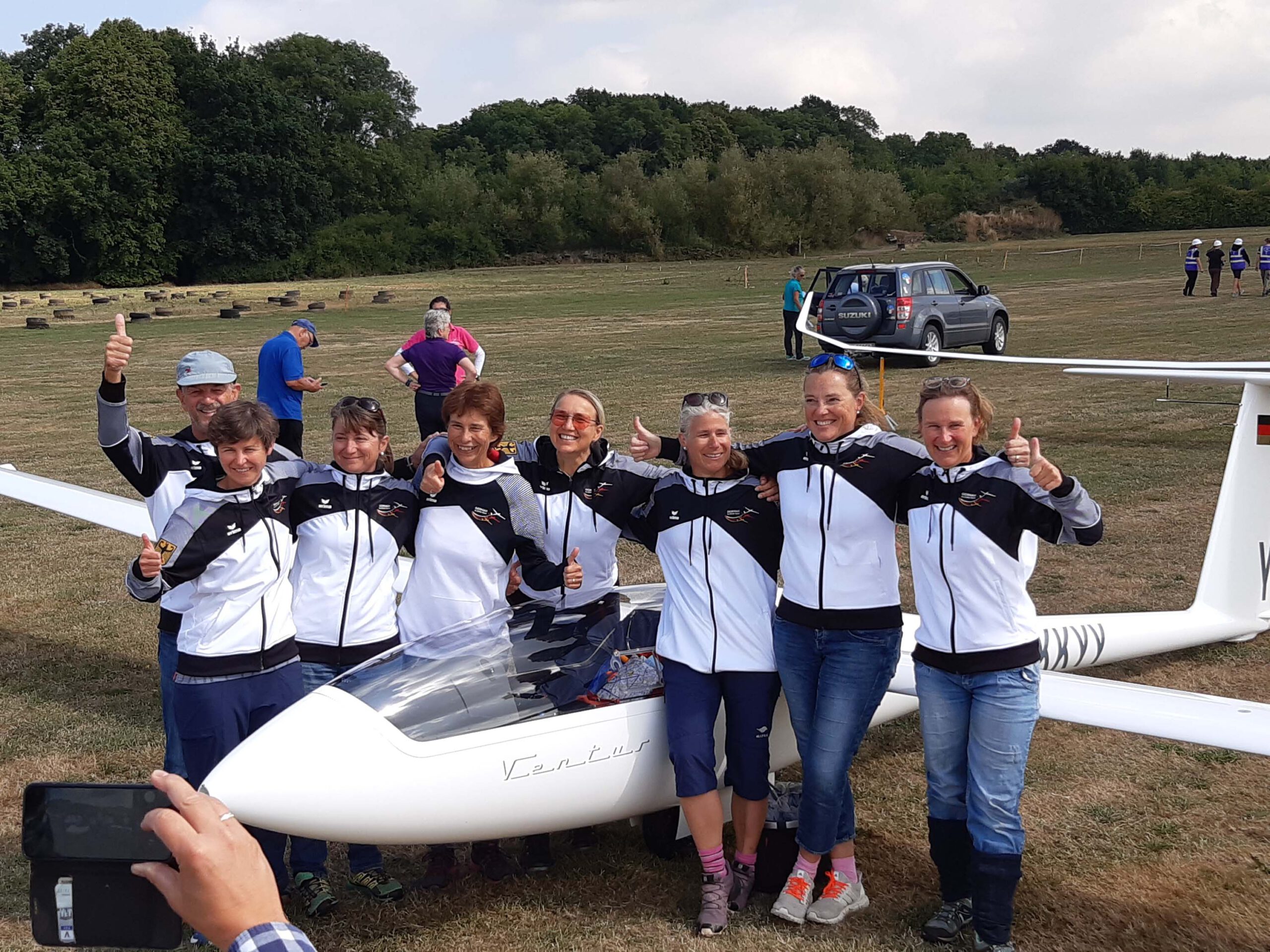 Achtung wichtige Durchsage: Conny – Cornelia Schaich – ist Weltmeisterin 2022 in der Standardklasse! Da gibt’s was zu feiern im Sportflieger-Club Stuttgart! Wie schon 2008 – damals war Conny Deutsche Meisterin – und 2003 – da war sie das erste Mal Weltmeisterin.
