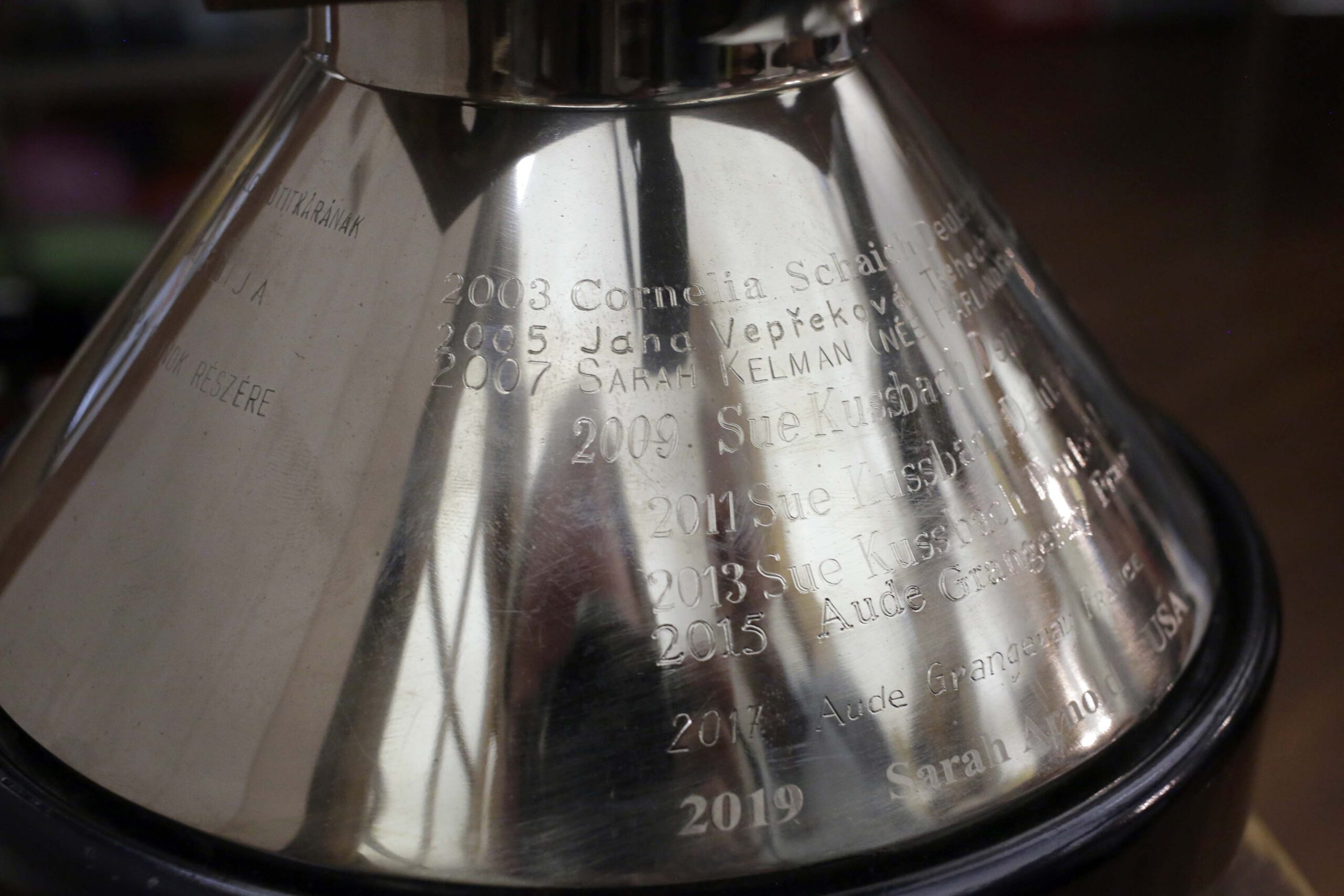 Als Dankeschön für den spannenden Bericht gab’s einen Blumenstrauß vom Verein und in fröhlicher Runde die Bewunderung des Pokals. Es ist ein Wanderpokal – und jede Gewinnerin wird mit Namen und Jahr eingraviert. Wir sind ganz schön stolz, eine Weltmeisterin im Verein zu haben – und jetzt auch noch mehrfache Weltmeisterin!