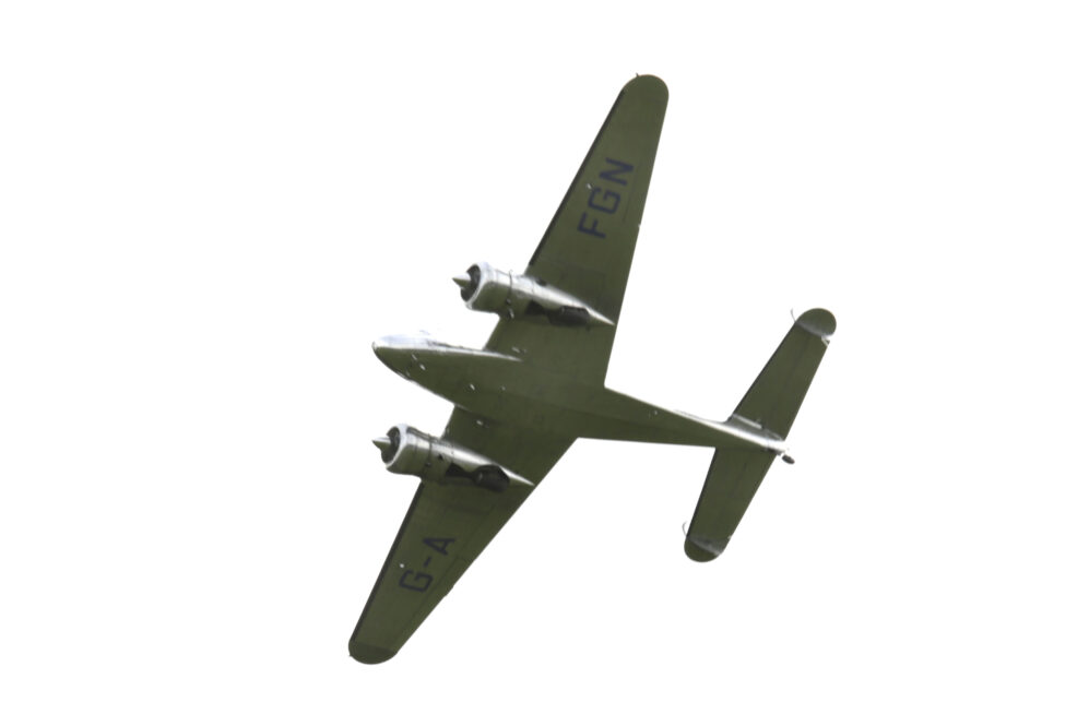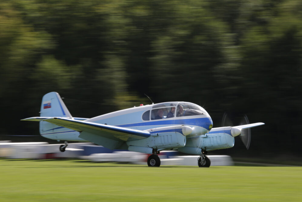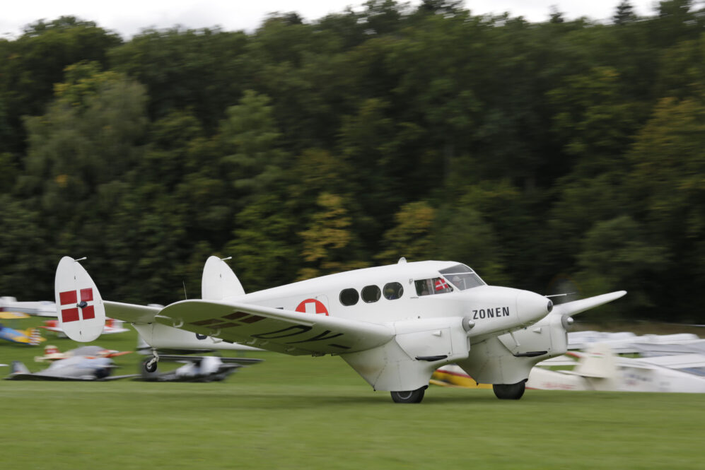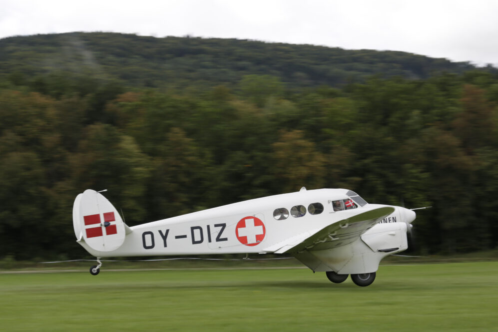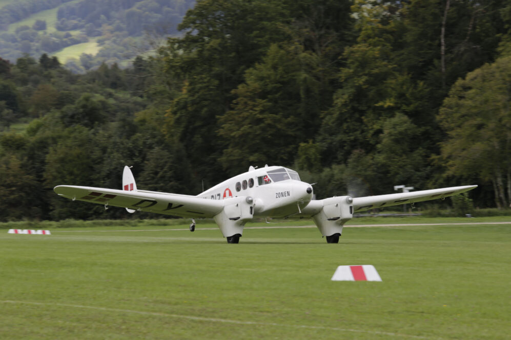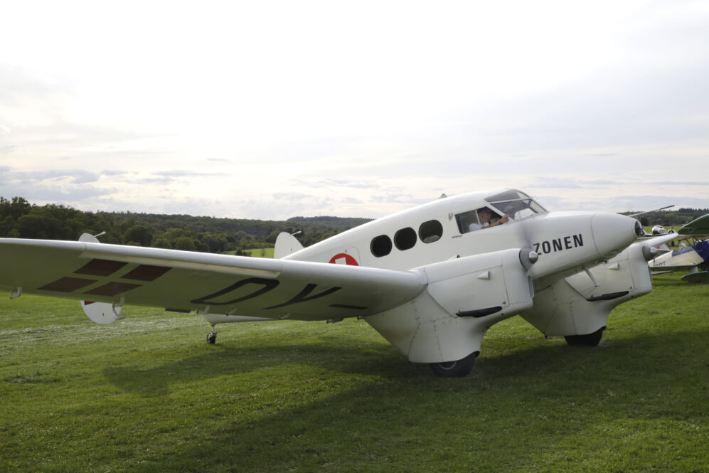 Ganz ähnlich gestaltet ist die Beech 18, mit 2 x Pratt & Whitney R-985. Sie ist auch für 6 Passagiere und 2 Piloten. Erstflug 1937. Bilderfolge: rechter Motor läuft schon, der linke speit Feuer – um dann zu laufen.