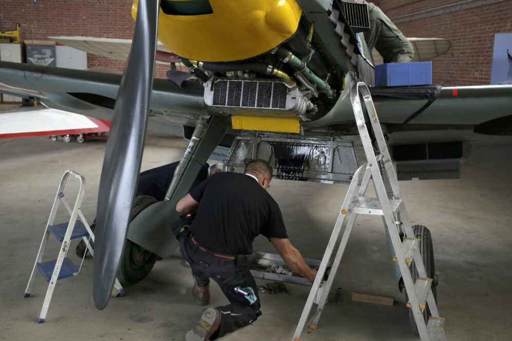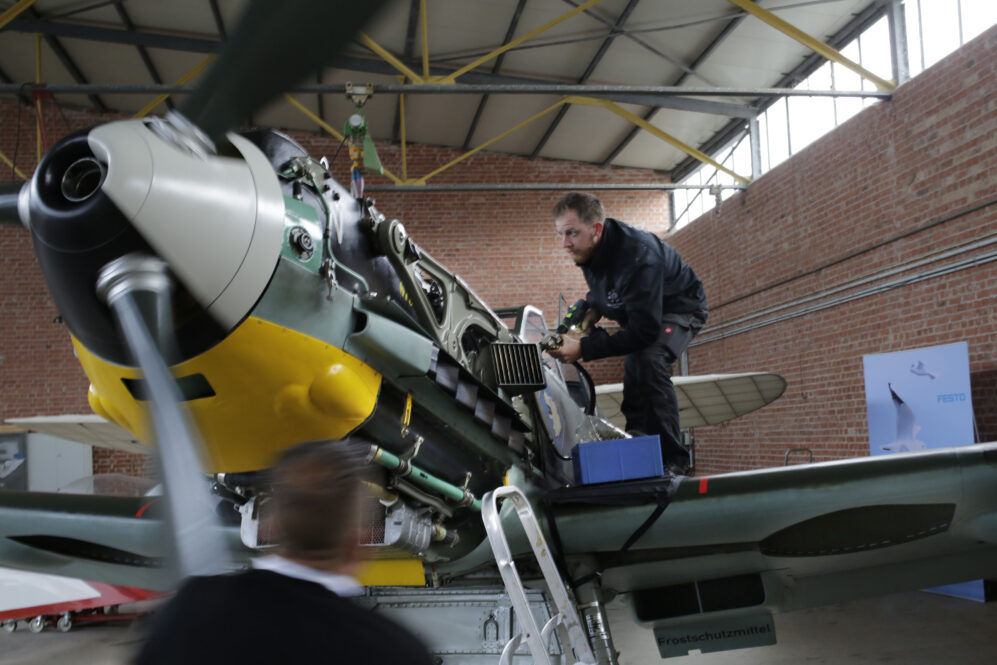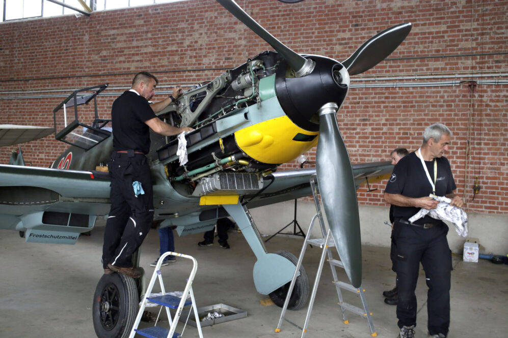 Den Abschluss bildet das Schwermetall – die Jagdflugzeuge. Zu erst kommt die Arbeit: Die Monteure schrauben aus jedem Zylinder eine der beiden Zündkerzen raus und begutachten sie. Dann wird noch Öl weg geputzt. Für einen Mosewart wie mich sieht das nach viel Öl aus, aber der Motor DB 601 hat ja auch 34L Hubraum.