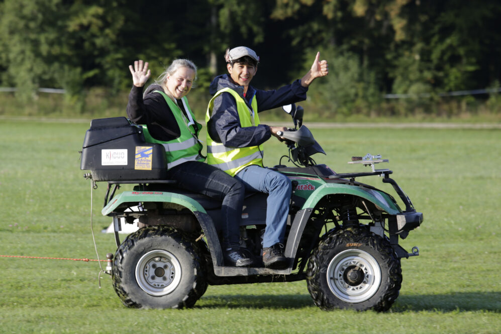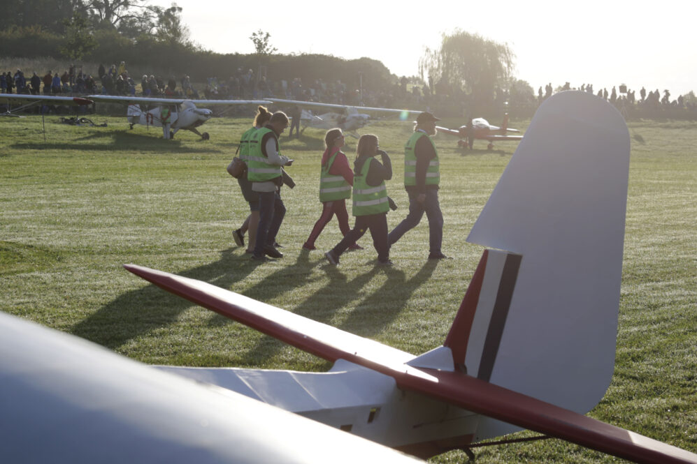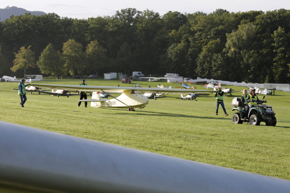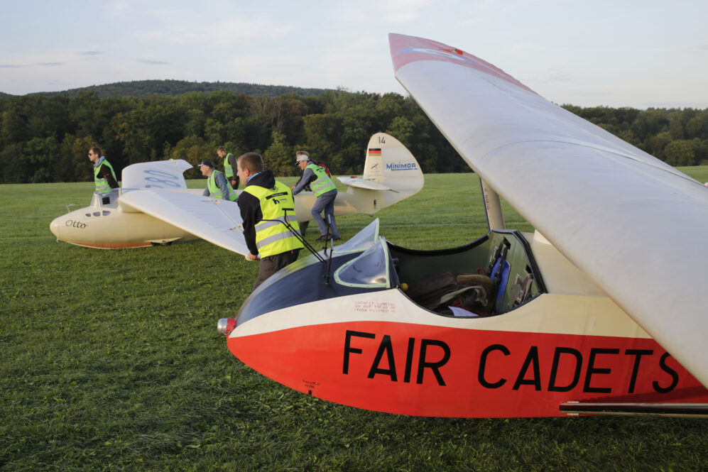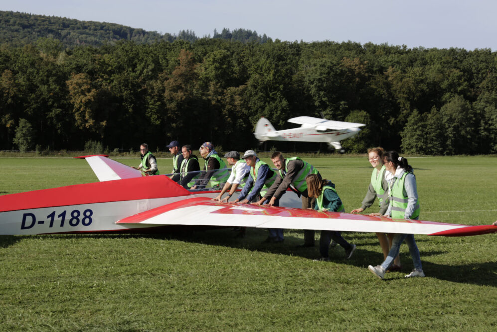 Ein Team schreitet zur Tat – im Hintergrund werden die Schleppflugzeuge vorbereitet.
