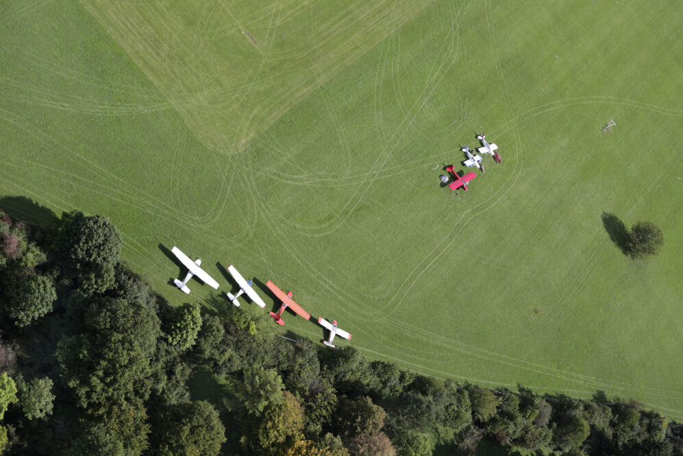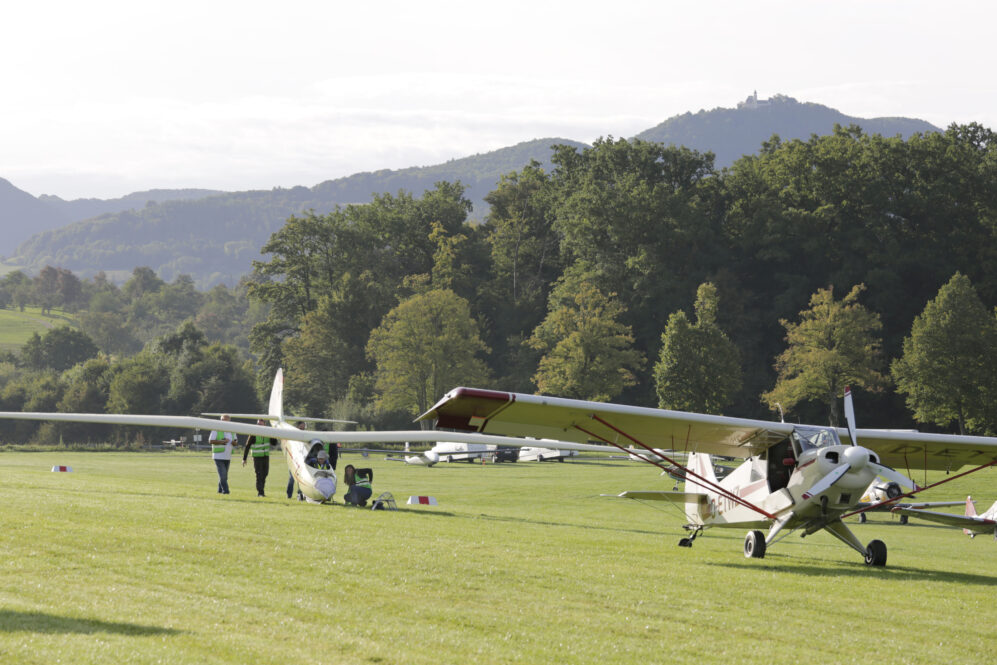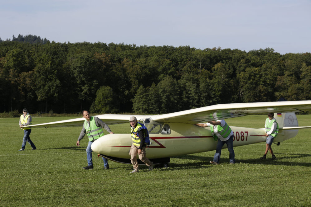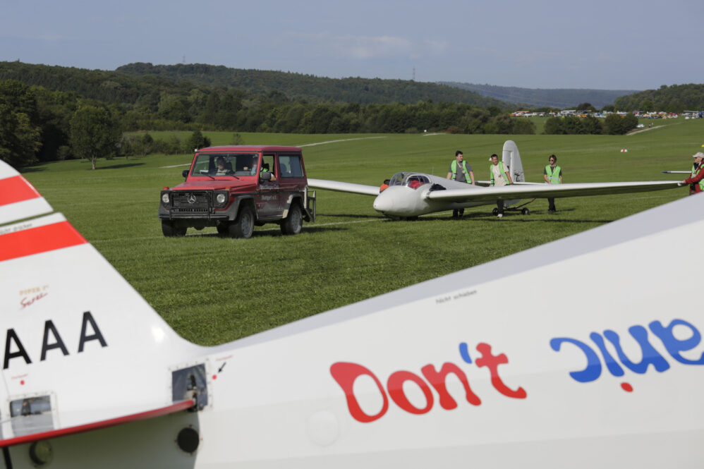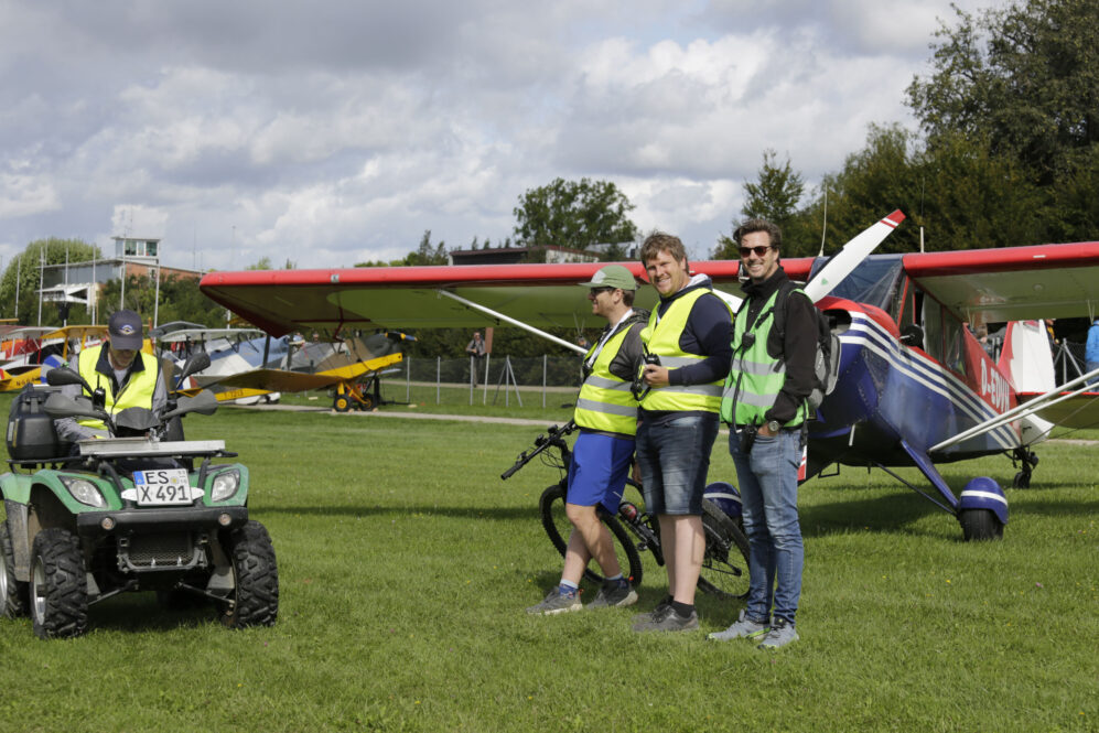 Ein Team schreitet zur Tat – im Hintergrund werden die Schleppflugzeuge vorbereitet.