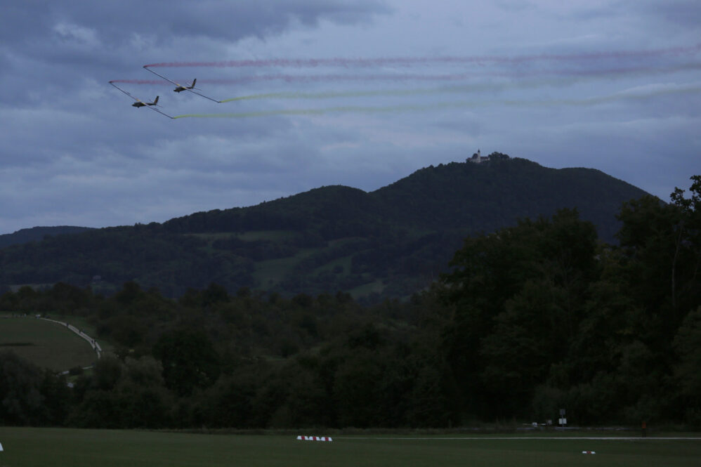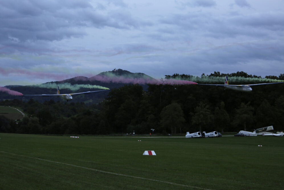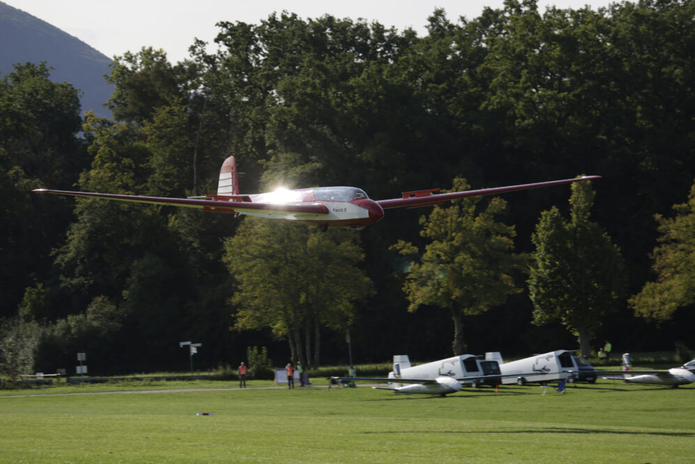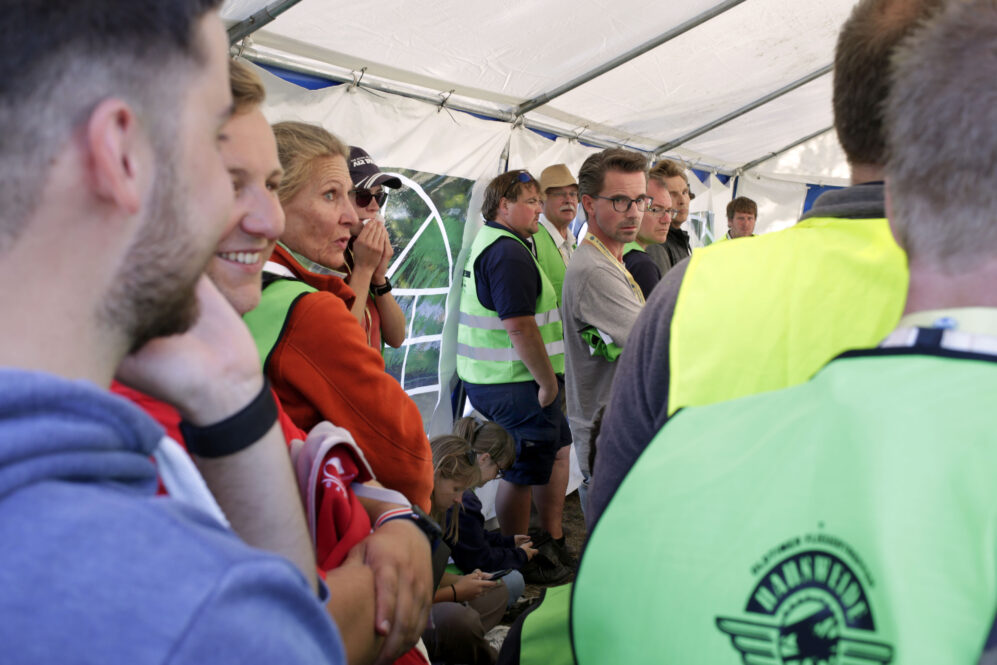 Wir sind zeitlich jetzt am Sonntag angekommen. Es ist im Freien von oben her feucht bis nieselig. Die für das Programm Verantwortlichen überlegen her und hin – Faszination Segelflug aufbauen oder nicht? Es klärt sich dann doch schnell – für das mögliche Flugfenster wird nur Nieselregen vorhergesagt.
