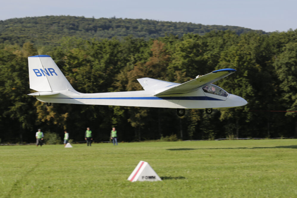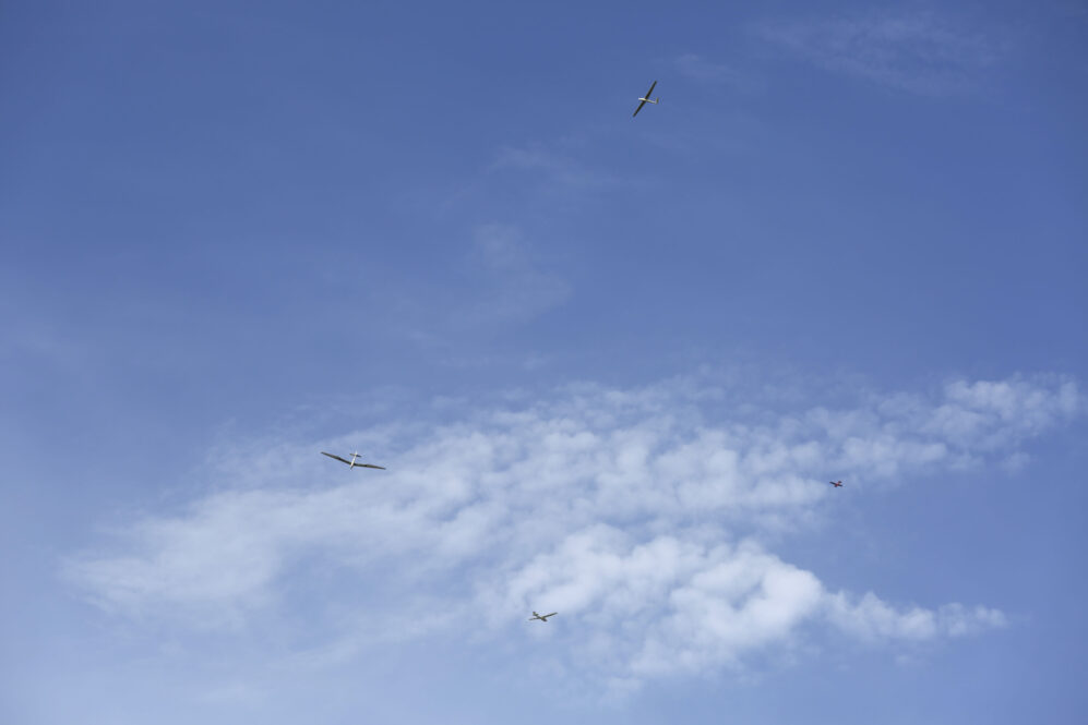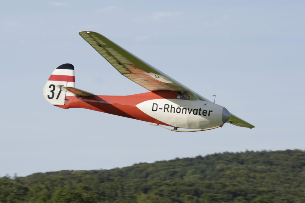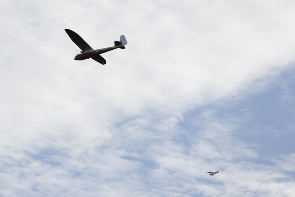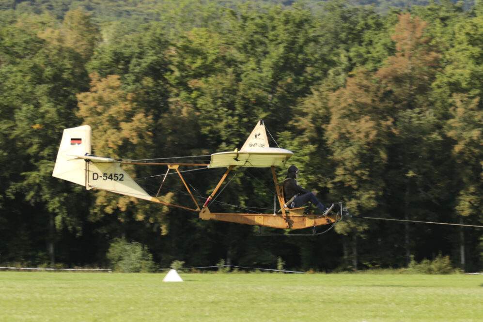 Condor IV mit Michael Rehmet, Eigner VFhS e.V. = Verein zur Förderung des historischen Segelflugs. Achtung – das Fahrwerk darf diesmal nicht abgeworfen werden! Wegen den nachfolgenden Flugzeugen.