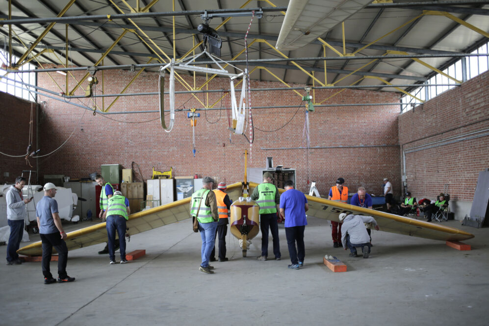 Das Hebezeug ist nicht für den Condor mit 358kg ausgelegt – da braucht’s einen starken Mann am Hebel!