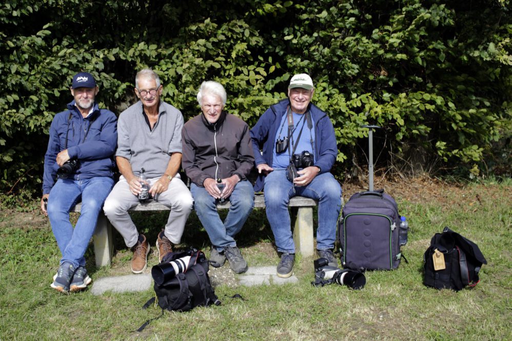 Vor den Flugzeugen zeige ich zuerst noch Besucher, die mich beeindruckt haben: das Bild ist vom Donnerstag. Die 4 Fans aus den Niederlanden sind mit der Linie nach Stuttgart geflogen – und haben sich auf der Bank stationiert. Immer wenn’s irgendwo laut wurde sind sie zeitgleich aufgestanden und haben am Zaun fotografiert. Dann wieder zurück zur Bank.